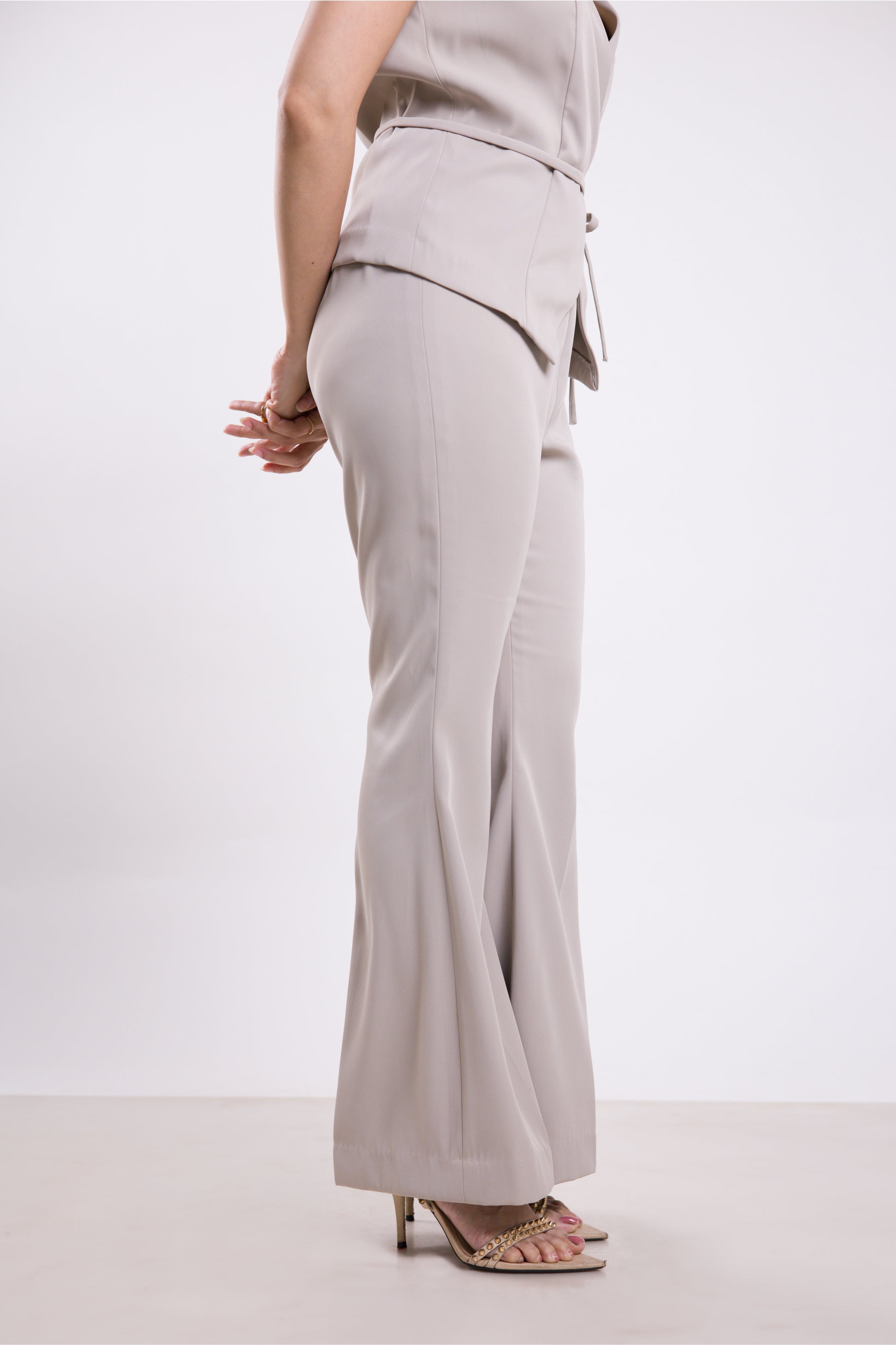 Elevate your everyday look with the Bare Greige Cinched Bell Bottom, designed for a sleek, elongating fit. Featuring a side conceal zip and back double darts for subtle shaping, this style has no waist belt for a clean, minimalist finish. The flared silhouette adds a touch of modern edge to a timeless design.