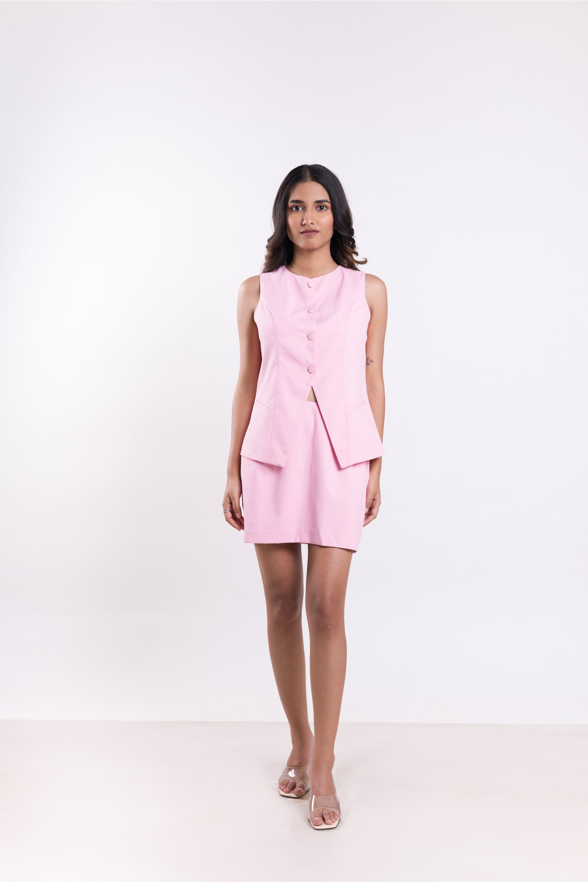 Effortlessly chic and tailored to perfection, the Bloom Set combines classic structure with modern minimalism. Featuring a mid-length buttoned vest with clean lines and a flattering silhouette, paired with a versatile plain skort that offers both comfort and style, this coordinated ensemble is your go-to for polished day-to-night looks. Whether worn together or mixed and matched, the Bloom Set adds a fresh, refined touch to any wardrobe.