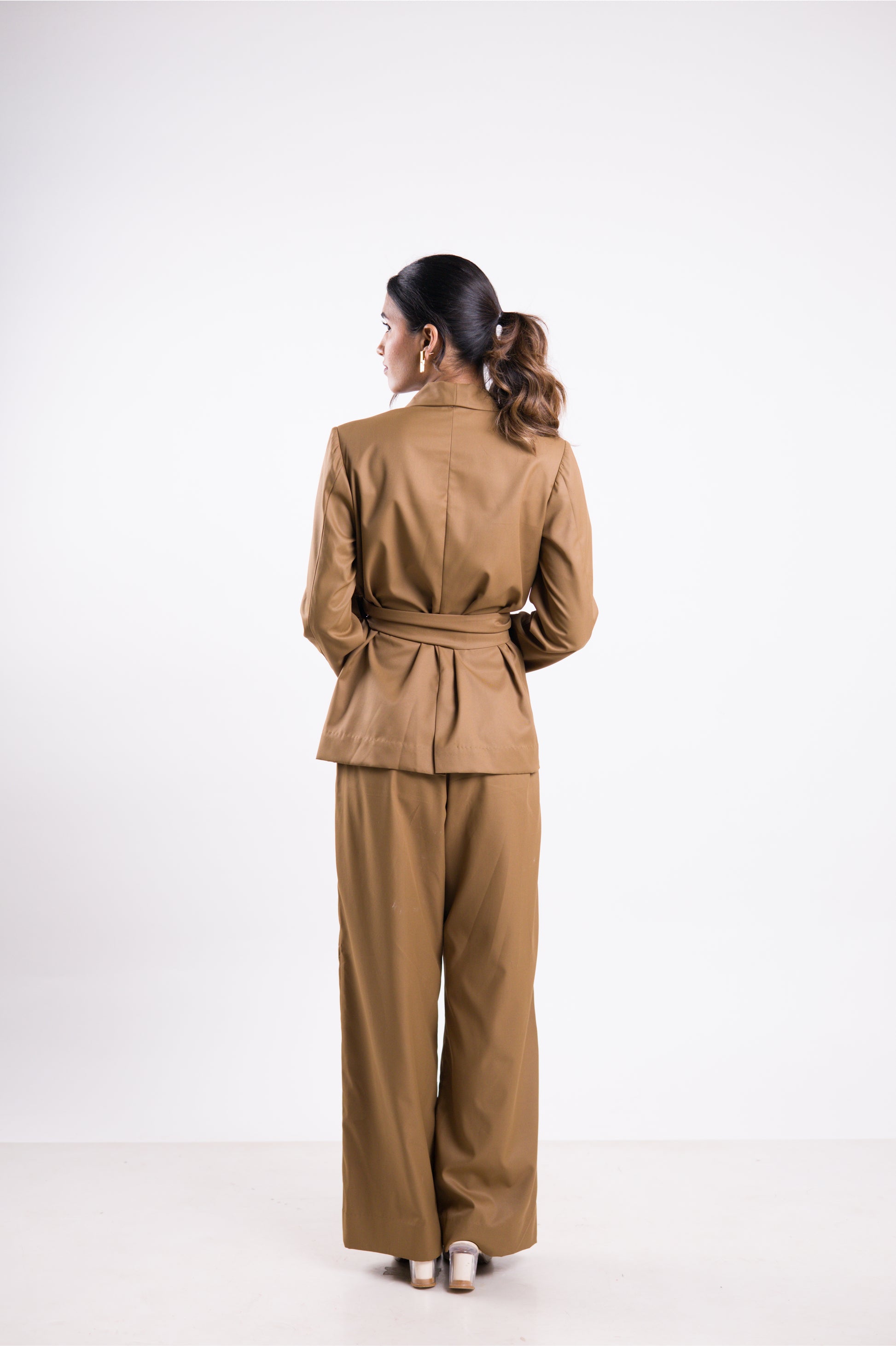 The ultimate blend of structure and ease, these mocha straight-fit trousers are designed with the perfect flare for a timeless, elongated silhouette. Featuring a clean waistband with a fabric-covered button and zip closure, they offer a sleek finish. Tailored with two back darts for subtle shaping, these trousers are your go-to for effortless polish and everyday versatility.